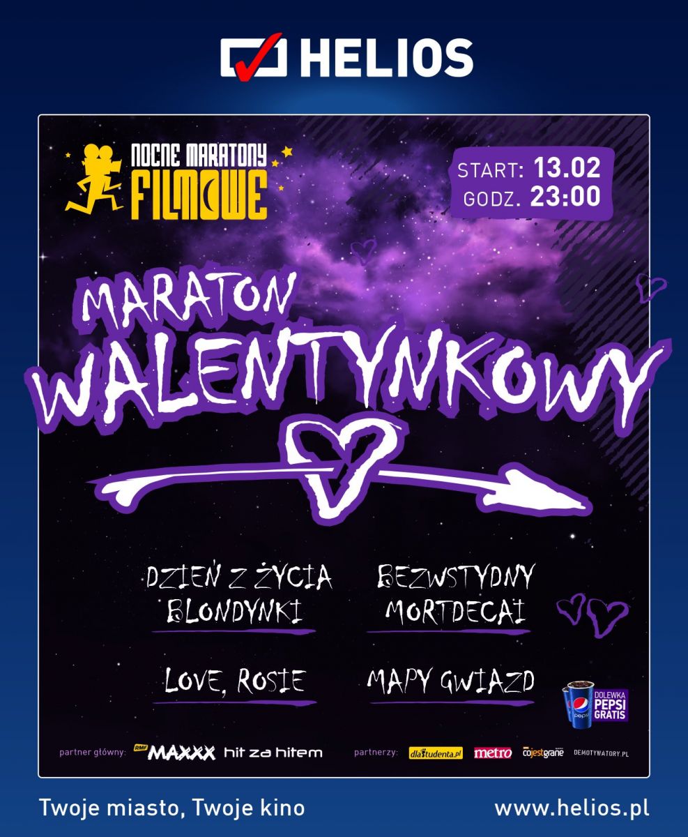 13 lutego o godzinie 23.00, w kinie Helios zagramy Maraton Walentynkowy. Będzie to noc nie tylko romantyczna … Start: 13.02. godz. 23:00 Meta: 14.02 godz. 07:00